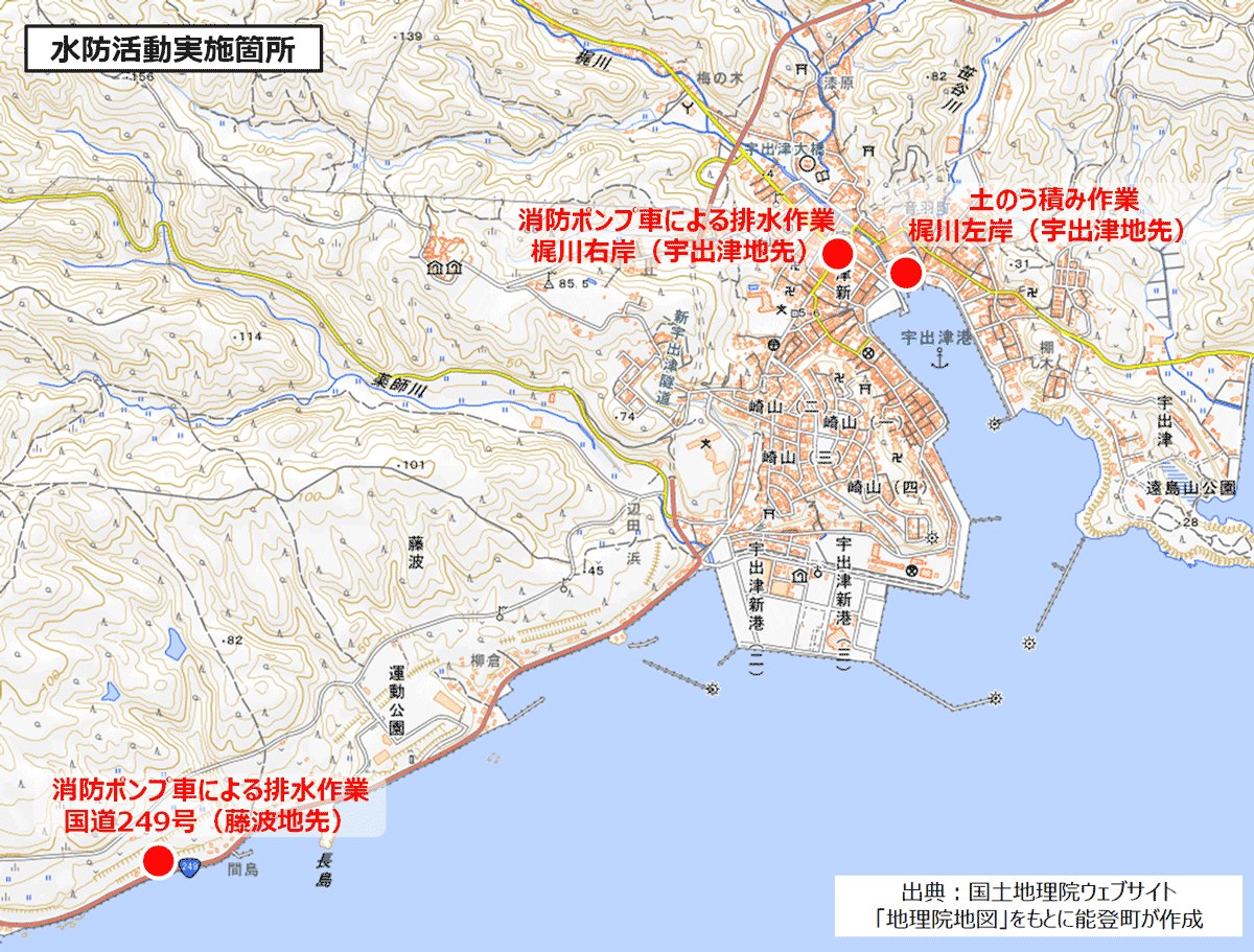 能登町消防団は、9月20日からの大雨に際し、令和6年9月21日から22日にかけて全団が出動した。